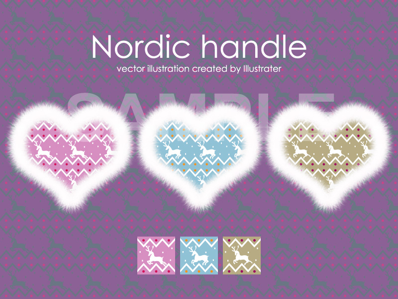 サイズの変更やアレンジなど用途に合わせてご利用ください。 (※ファーのハートはオブジェクト化(画像)されています) ノルディック柄 飾り 北欧 トナカイ パターン スウォッチ 背景 ファー ふわふわ イラスト ダウンロード おしゃれ お洒落 オシャレ 綺麗 きれい キレイ 可愛い WEB素材 ネットショップ素材 挿絵 販売 イラストレーター データ